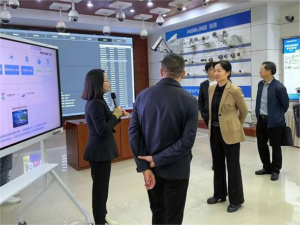 Mayor Sheng Lei and his entourage inspected the research and development of core technologies of Mingking in digital twin platform, AI algorithm for power transmission lines, AI algorithm for power safety supervision, etc., and affirmed Mingking's efforts and achievements in cloud computing, big data analysis, AI intelligent analysis and other technological achievements.