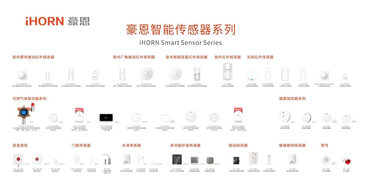 豪恩已深耕傳感器領(lǐng)域20余年,擁有200余項(xiàng)專(zhuān)利技術(shù),傳感器品類(lèi)多達(dá)30種,涵蓋了紅外傳感器、水浸傳感器、門(mén)窗傳感器、跌倒監(jiān)測(cè)傳感器、振動(dòng)傳感器、溫濕度傳感器等,種類(lèi)豐富、功能齊全、性價(jià)比高。