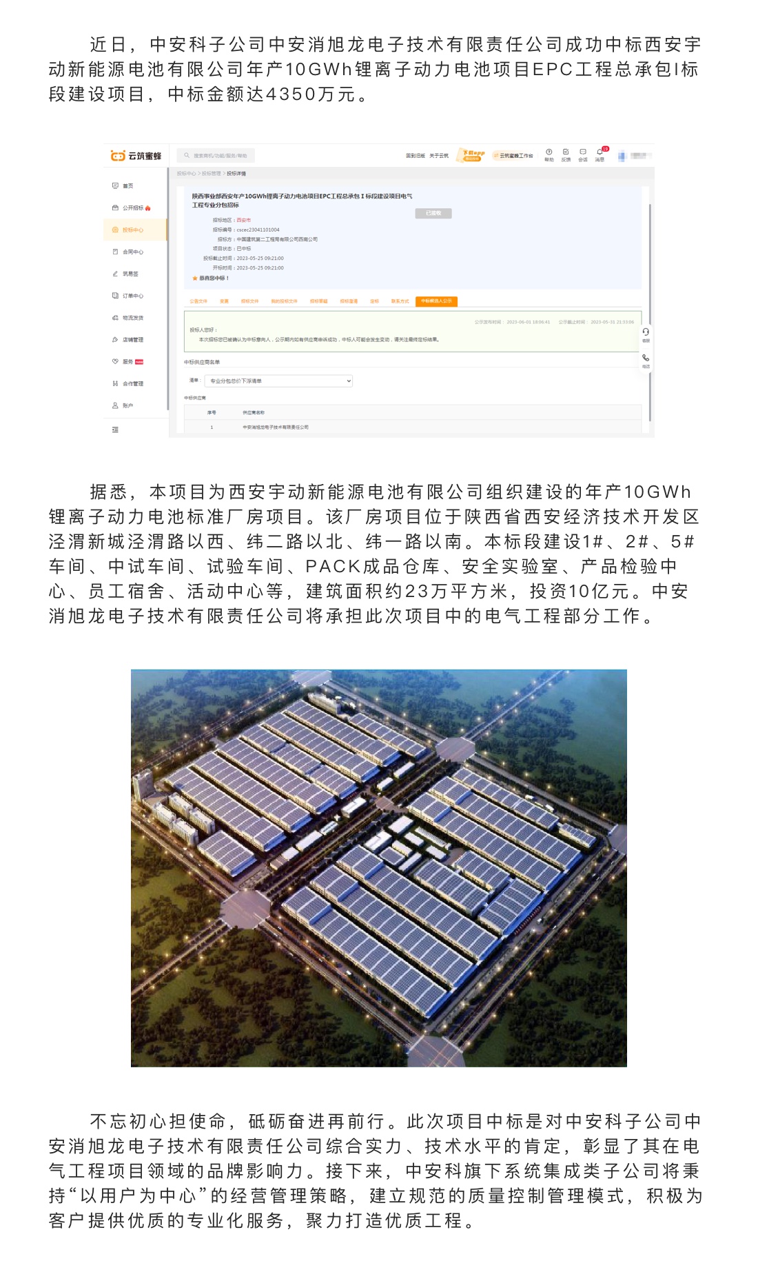 中標喜報|中安科子公司中安消旭龍電子技術有限責任公司中標西安宇動新能源電池有限公司年產10GWh鋰離子動力電池項目EPC工程總承包I標段建設項目
