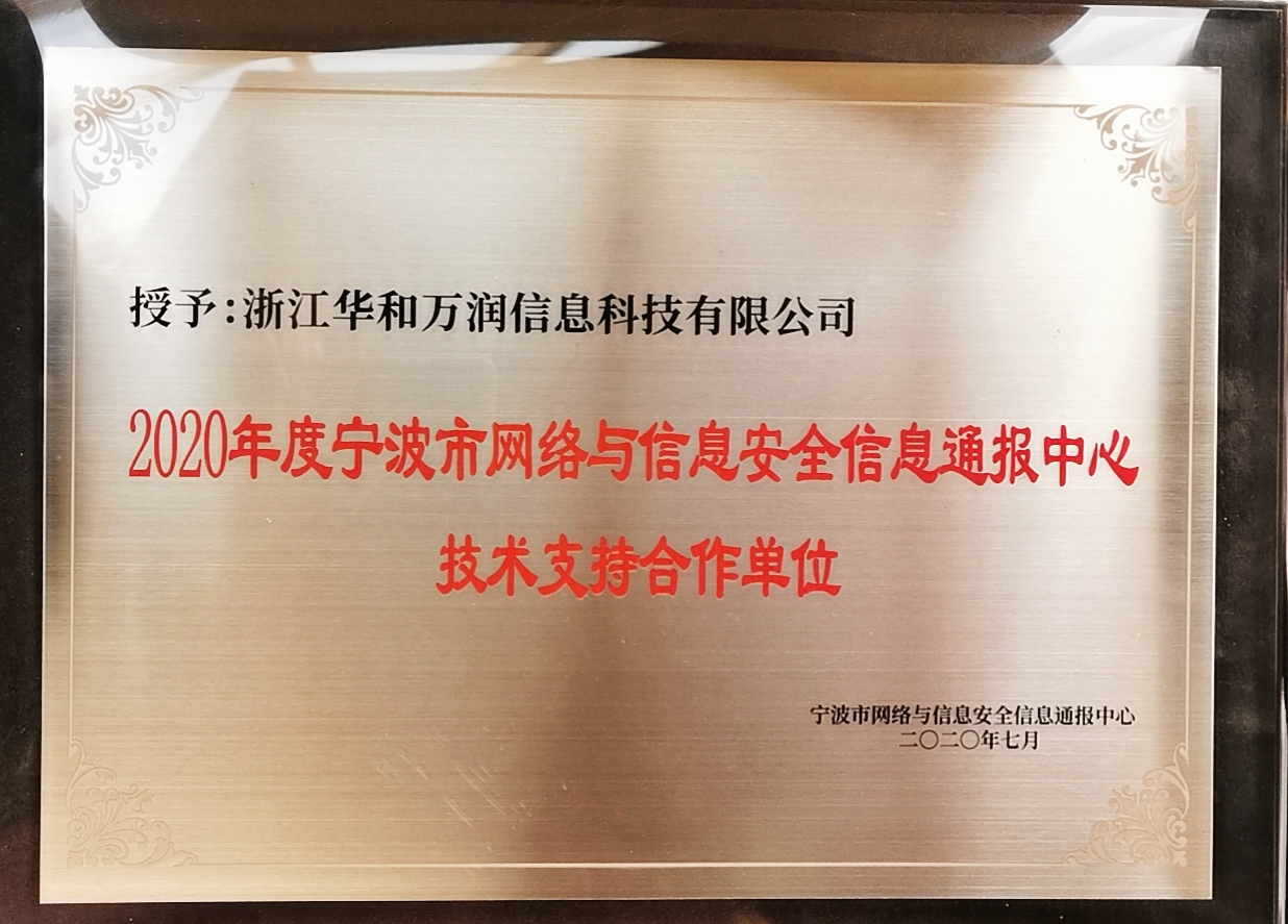 華和萬潤能夠榮獲「2020年度寧波市網(wǎng)絡(luò)與信息安全信息通報中心技術(shù)支持合作單位」、「2019-2020協(xié)會突出貢獻(xiàn)獎」,離不開政府、協(xié)會與客戶的鼎力支持。華和萬潤擁有全國性的服務(wù)體系,在北京、天津、上海、深圳、云南、湖北、河南等地設(shè)立了辦事機(jī)構(gòu),已發(fā)展成為一家業(yè)務(wù)覆蓋全國的高新技術(shù)企業(yè)。