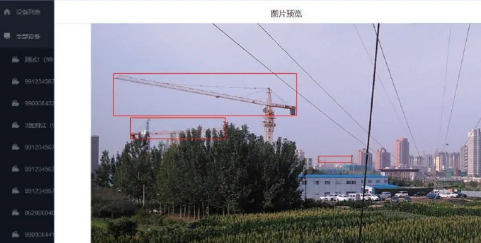 通過(guò) AI 智能識(shí)別分析視頻畫(huà)面,可以對(duì)施工機(jī)械(吊車(chē)、塔員、挖掘機(jī))、異物懸掛、煙火等進(jìn)行識(shí)別。