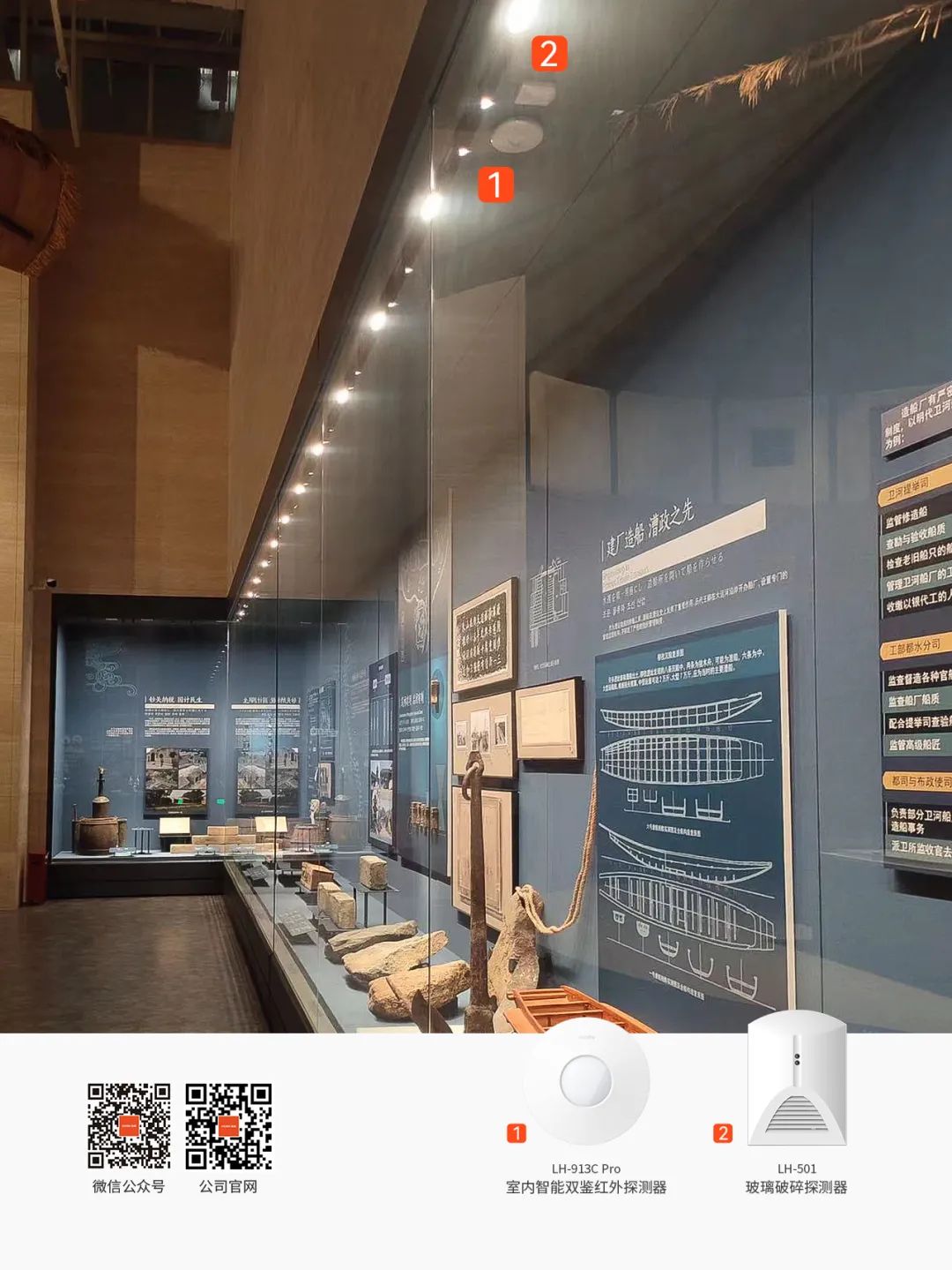 而在每個(gè)展柜內(nèi)部,豪恩也安裝了玻璃破碎探測(cè)器,及時(shí)感知對(duì)展柜的惡意敲擊、爆破以及高低溫攻擊等破壞行為,為珍貴的文物筑起第二道保護(hù)墻。