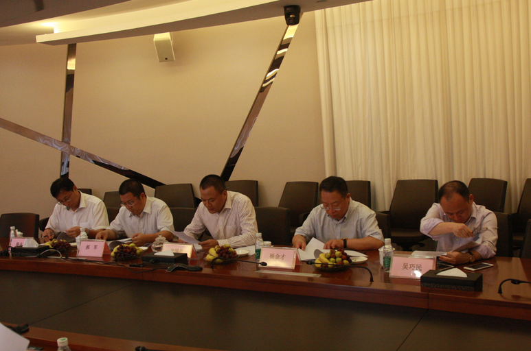 董事會(huì)會(huì)議現(xiàn)場,董事長涂國身(左三);董事:吳巧民(右一)、楊金才(右二)、秦永軍(左一)、郝軍(左二)