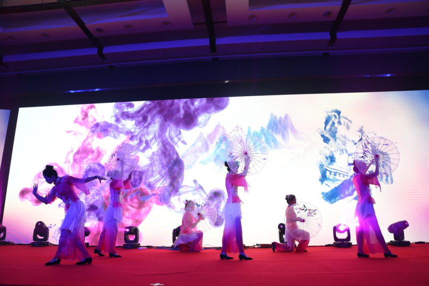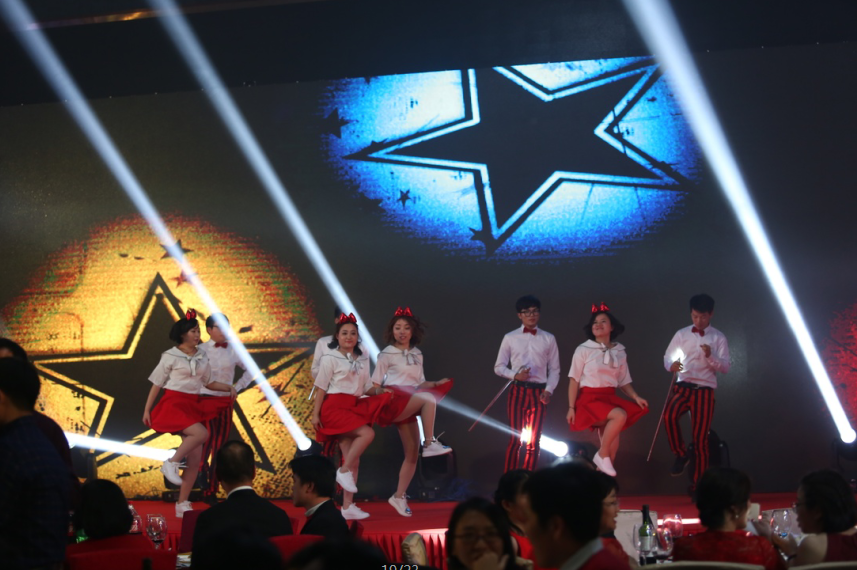 在中安科股份本部的一曲激烈昂揚(yáng)的《斗牛舞》中,晚宴拉開帷幕。8名女郎舞姿干凈利落、紅色裙裾翻飛,男伴氣宇宣揚(yáng),體現(xiàn)了西班牙斗牛士勇往直前的氣概;中安消投資公司的相聲《做啥都要?jiǎng)?chuàng)新》,一逗一捧相得益彰、笑料百出;衛(wèi)安集團(tuán)的《月亮代表我的心》吉他彈唱浪漫滿場;中科智能的創(chuàng)意朗誦《中科星愿》,在黑暗中用星星點(diǎn)點(diǎn)的光斑演繹了動(dòng)人的企業(yè)歷程;華和萬潤的《江南舞:煙花三月》舞姿曼妙婀娜,盡顯江南水鄉(xiāng)的詩意柔情;中安消技術(shù)的歌曲串燒《中安消大家庭》溫情而暖心;上海擎天由兩位才華洋溢的員工家屬小朋友帶來了歡快的尤克里里樂器演奏;常州明景的舞蹈《Darling》俏皮輕快、時(shí)尚動(dòng)感;主持人的《燕尾蝶》獨(dú)唱優(yōu)美動(dòng)聽、爆發(fā)力十足;最后登臺的《貓步輕俏》,舞者從臺上舞動(dòng)到臺下,嗨翻全場。晚會(huì)上還穿插進(jìn)行了豐富有趣的游戲互動(dòng),笑聲不斷、驚喜連連。