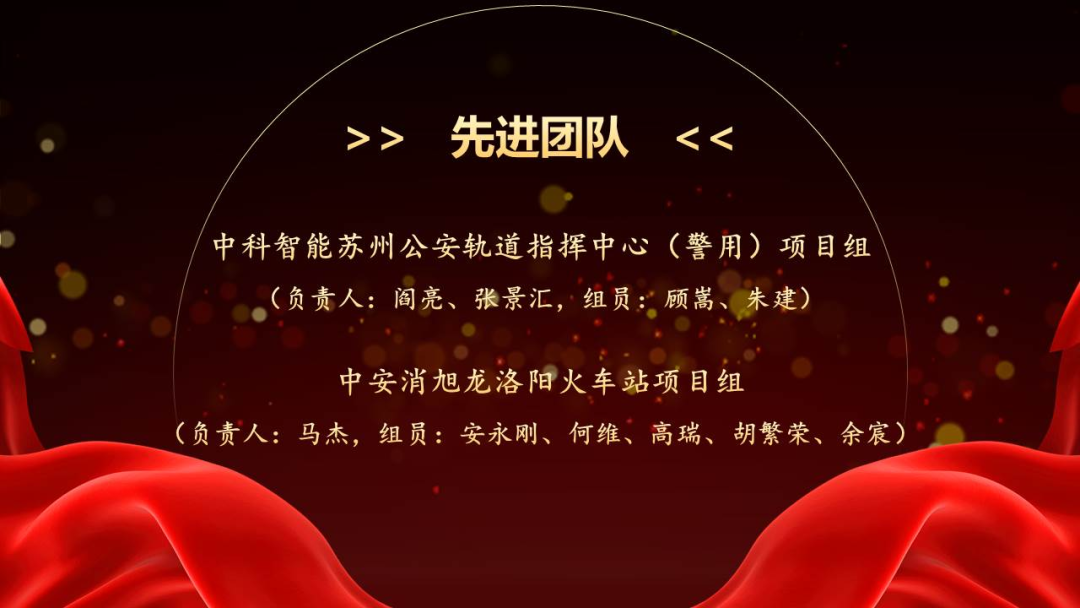 “先進團隊”——中科智能蘇州公安軌道指揮中心(警用)項目組,負責人:閻亮、張景匯,組員:顧嵩、朱建,承建的“蘇州市公安軌道應急指揮中心警用智能化采購與集成項目”,涉及10個公安軌道應用業(yè)務智能化系統(tǒng),設備種類多、供貨期不一。為保質(zhì)保量、按期完工,項目組制定了詳盡的施工進度計劃、設備材料檢驗標準等,配合協(xié)調(diào)設計、分局、線網(wǎng)實施單位、各系統(tǒng)供應商廠家等專業(yè)對接技術(shù)需求及落地,最終完美交付,得到了各方的充分肯定,目前該項目正在申報公安部科技進步二等獎。