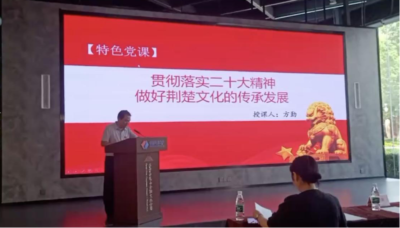 其次,湖北省文物考古研究院黨委書(shū)記、院長(zhǎng)方勤為大家講授黨課《貫徹落實(shí)二十大精神 做好荊楚文化的傳承發(fā)展》。社區(qū)九旬老黨員、志愿軍周學(xué)頤更是來(lái)到現(xiàn)場(chǎng),親身為大家講述其在抗美援朝戰(zhàn)爭(zhēng)上九死一生的經(jīng)歷,激勵(lì)大家熱愛(ài)祖國(guó)、感恩生活。