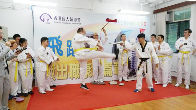 衛(wèi)安的運(yùn)營經(jīng)理Jacky Leung為輔導(dǎo)會孩子們進(jìn)行跆拳道培訓(xùn),并于60周年開放日開幕儀式上進(jìn)行現(xiàn)場表演。開幕儀式結(jié)束后,衛(wèi)安員工前往輔導(dǎo)會工場參觀,現(xiàn)場觀看了紙盒、航班用耳筒、手提袋等物品制作,深入了解該機(jī)構(gòu)會員的工作。