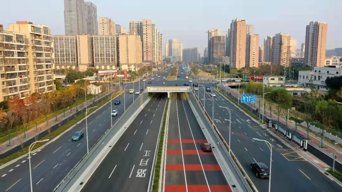 蘇州城北路(長滸大橋-婁江快速路段)改建工程位于蘇州市中心城區(qū)北部,設計標準時速60公里/小時,路線全長約4.8km,隧道為東西向下穿隧道,起于江月路,終于江宙路,同時下穿地鐵2號線以及地鐵4號線,雙洞6車道,隧道全長1.5km。