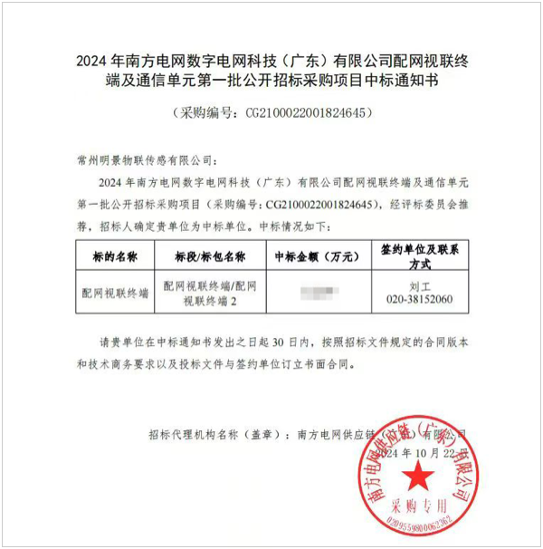 此次中標南方電網(wǎng)項目,標志著明景正式成為南方電網(wǎng)數(shù)字電網(wǎng)科技公司的直接供應(yīng)商,不僅彰顯了明景的專業(yè)實力和市場競爭力,也為公司的未來發(fā)展注入了新的動力和活力。通過深化與南方電網(wǎng)的攜手合作,推進安防技術(shù)在電力行業(yè)的革新應(yīng)用,為南方電網(wǎng)的數(shù)字化轉(zhuǎn)型與智能化升級添磚加瓦。